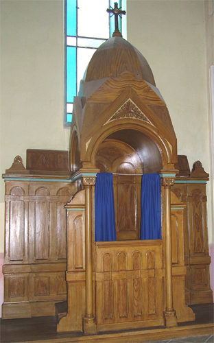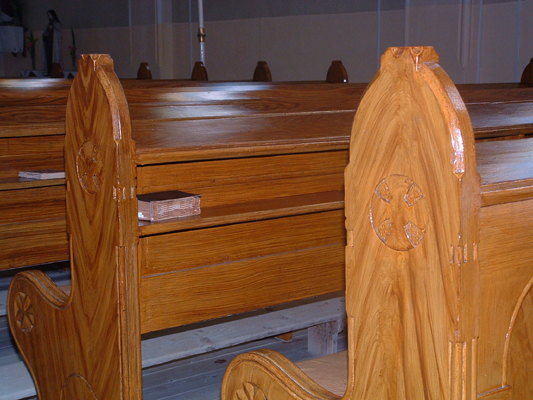 Az imazsámoly is beilleszkedik stílusában a templom többi bútoraihoz. Díszítéséről - térdeplő, könyöklő - a hímezni, varrni tudó asszonyok gondoskodnak.